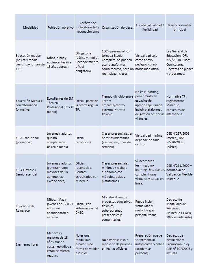 La implementación de un modelo híbrido en la enseñanza obligatoria regular de aplicarse en Chile, ofrece beneficios sustanciales que optimizarían tanto la labor docente como la experiencia del estudiante. En primer lugar, se modificaría la estructura de la jornada escolar. Los docentes podrían dedicar su tiempo no presencial a la creación de actividades de aprendizaje en línea, lo cual no solo preservaría sus horas de contrato, sino que también fomentaría la innovación pedagógica. Los estudiantes, por su parte, desarrollarían habilidades de autogestión al administrar su tiempo entre las actividades en línea y las clases presenciales, las cuales se destinarían a la retroalimentación, la evaluación y el trabajo colaborativo, donde si es posible actualmente en otras modalidades de enseñanza que se aplican en Chile, ¿Por que no, en la enseñanza regular?